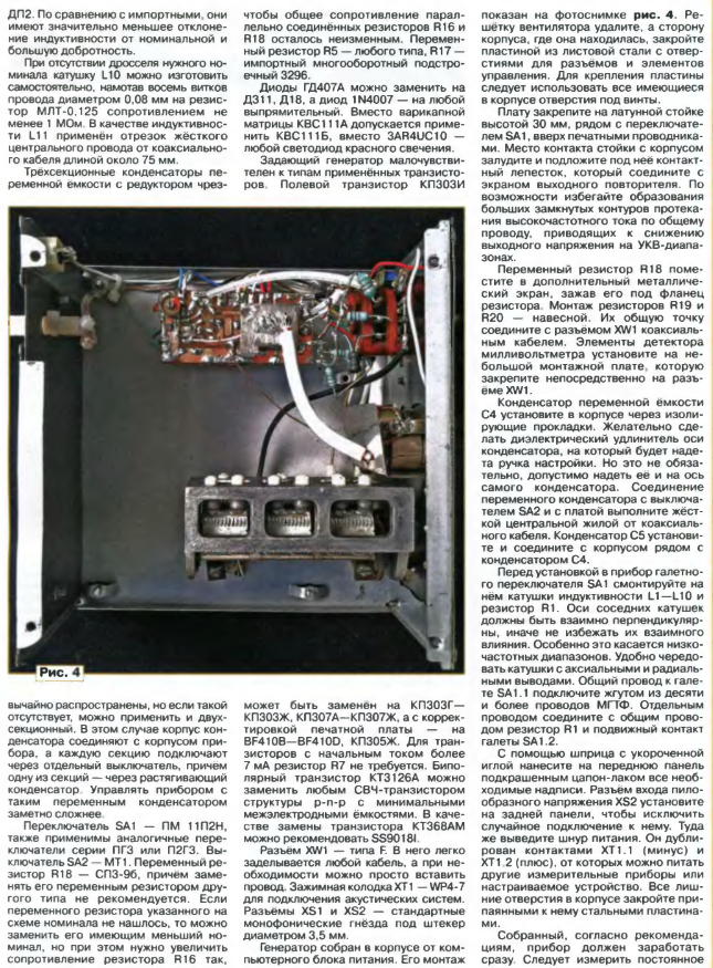 При настройке на максимальную чувствительность переменными и подстроичными резисторами в наушниках необходимо добиться РЕДКОЕ ПОТРЕСКИВАНИЕ.